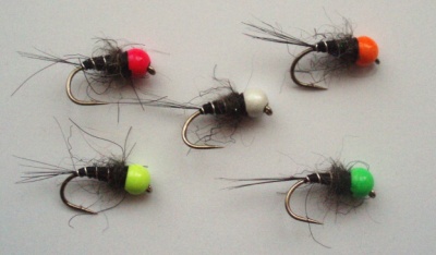 Tuto mušku jsem odkoukal z jednoho francouského vebu a s úspěchem odzkoušel na českých vodách. Na potočáky fungovala výborně varianta s oranžovou hlavičkou.